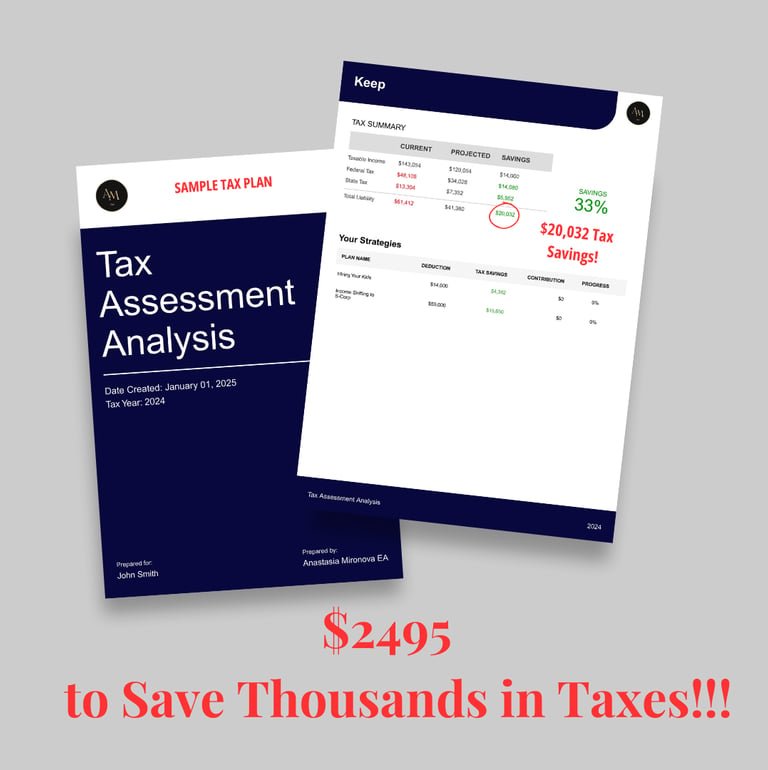 A thorough review of your current tax situation to identify areas of opportunity and potential savings.